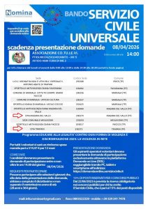 È stato pubblicato il bando per il Servizio Civile Universale, un’occasione imperdibile per i giovani che desiderano investire un anno della propria vita in un percorso di crescita umana e professionale, contribuendo attivamente alla legalità e al contrasto della violenza.